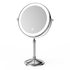 The wife liked it has 3 lighting temperatures. She said that helped for with different makeup applications. We both liked the painted brushed metal effect it has. The mirror has a thick heavy base that resists tipping over. I like when you plug it in it tells you when it is fully charged with red or green lighting. I believe the mirror works as advertised and is very decorative, but expensive. I am satisfied with this product.