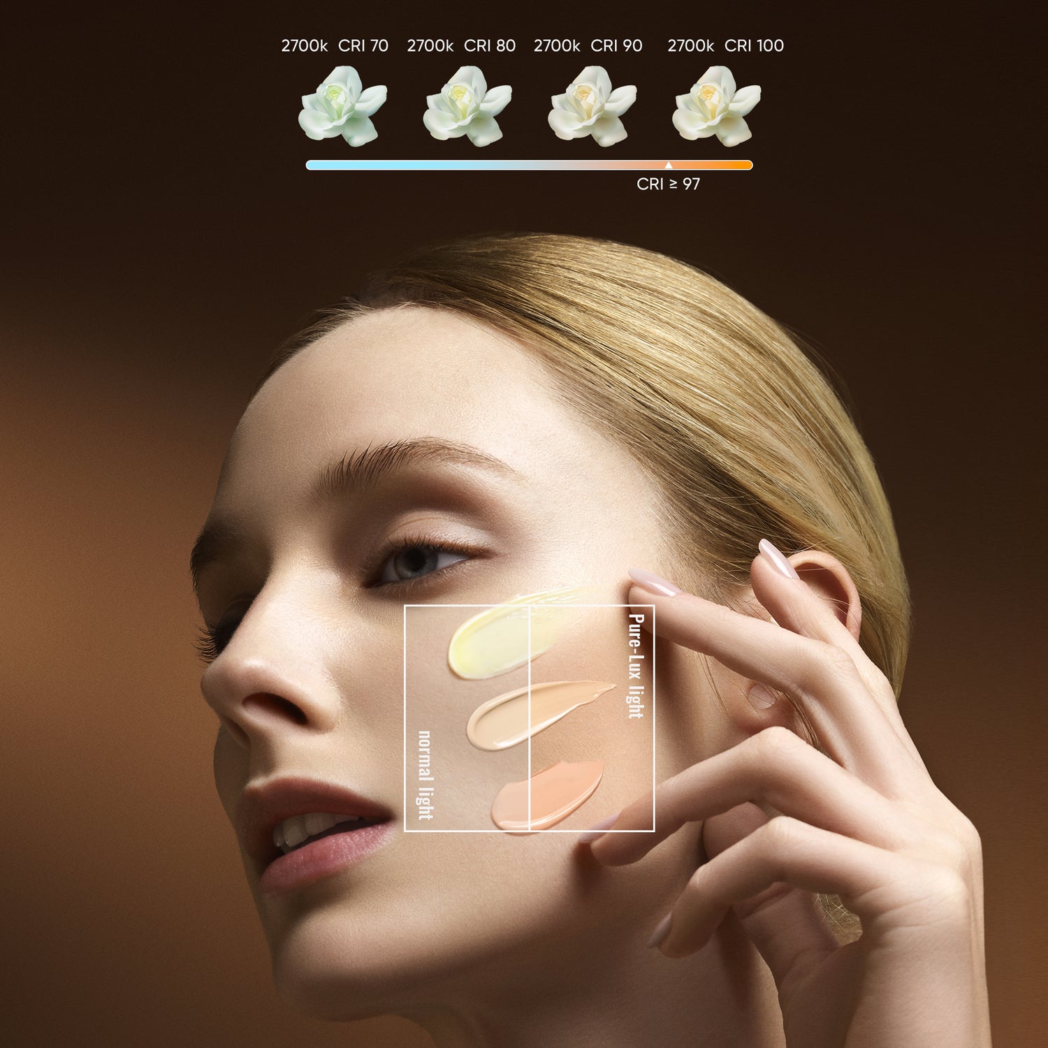 Featuring 60 full-spectrum LED lamp beads with acolor rendering index (CRI) of 97. This superior lighting closely resembles natural sunlight, providing the most true-to-life and bright light for your makeup routine. Enhance your makeup application efficiency and achieve professional-level results effortlessly, making it your shortcut to becoming a beauty master.