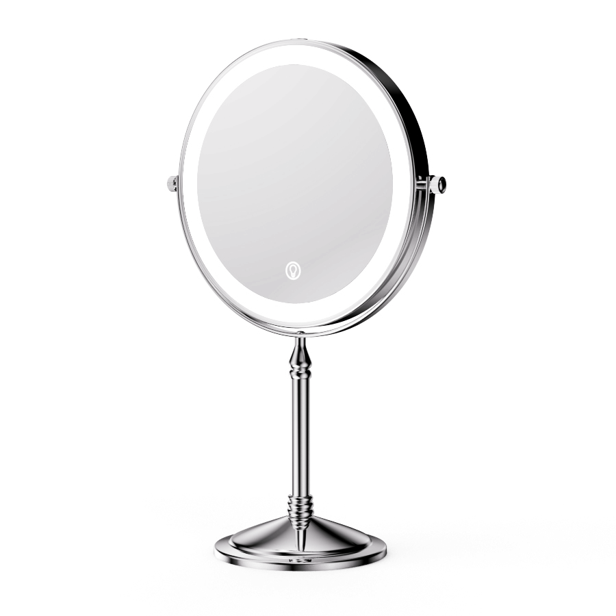 The wife liked it has 3 lighting temperatures. She said that helped for with different makeup applications. We both liked the painted brushed metal effect it has. The mirror has a thick heavy base that resists tipping over. I like when you plug it in it tells you when it is fully charged with red or green lighting. I believe the mirror works as advertised and is very decorative, but expensive. I am satisfied with this product.